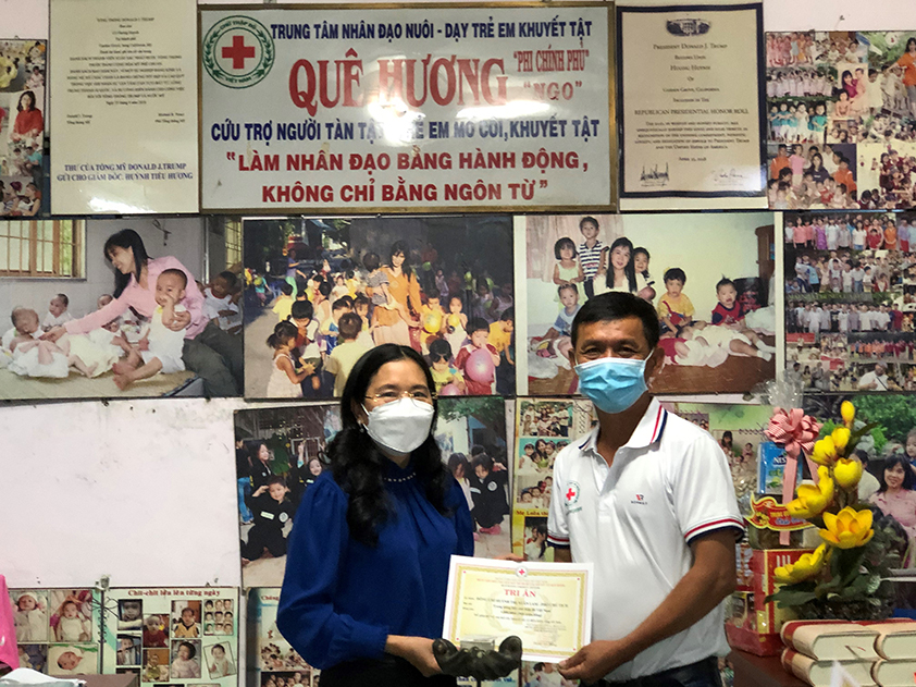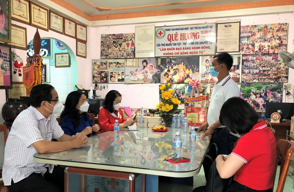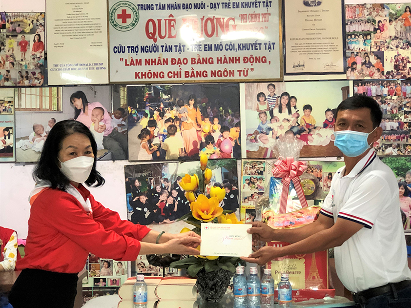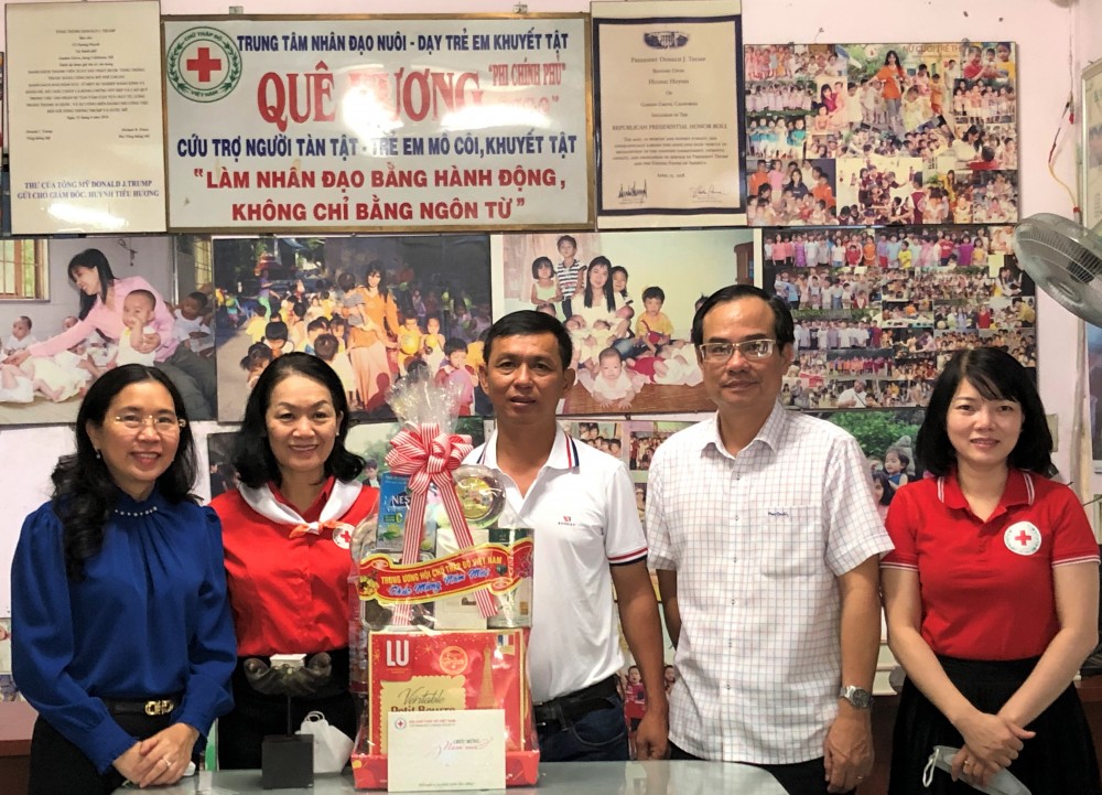 Sáng ngày 17 tháng 01 năm 2022 đoàn công tác của Hội chữ thập đỏ Việt Nam do đồng chí Bùi Thị Hoà - Bí thư Đảng đoàn, Chủ tịch Hội chữ thập đỏ Việt Nam cùng đồng chí Huỳnh Thị Xuân Lam - Phó Chủ tịch, đồng chí Vũ Thanh Lưu - Phó Chủ tịch, trưởng CQĐD phia Nam đã đến thăm, tặng quà, chúc tết Nguyên đán Nhâm Dần 2022 đến BGĐ, tập thể nhân viên cùng các trẻ em mồ côi, khuyết tật đang được nuôi dạy tại trung tâm.