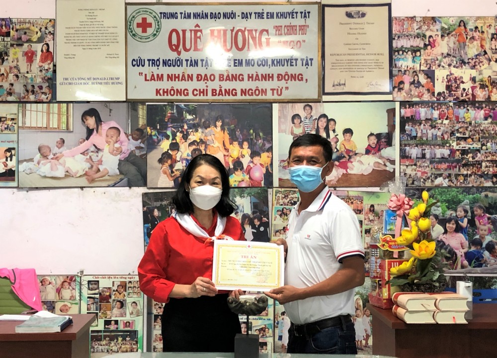 Nhân dịp Tết Nguyên đán Nhâm Dần 2022 đến gần TƯ Hội chữ thập đỏ Việt Nam đã có phần quà nhỏ là 5,000,000đ để góp phần cho các cháu tại Trung tâm có thêm điều kiện để đón Tết Nguyên đán Nhâm Dần 2022 đầm ấm hơn, cá nhân đồng chí Bùi Thị Hoà ủng hộ 2,000,000đ và đồng chí Huỳnh Thị Xuân Lam ủng hộ 1,000,000đ.